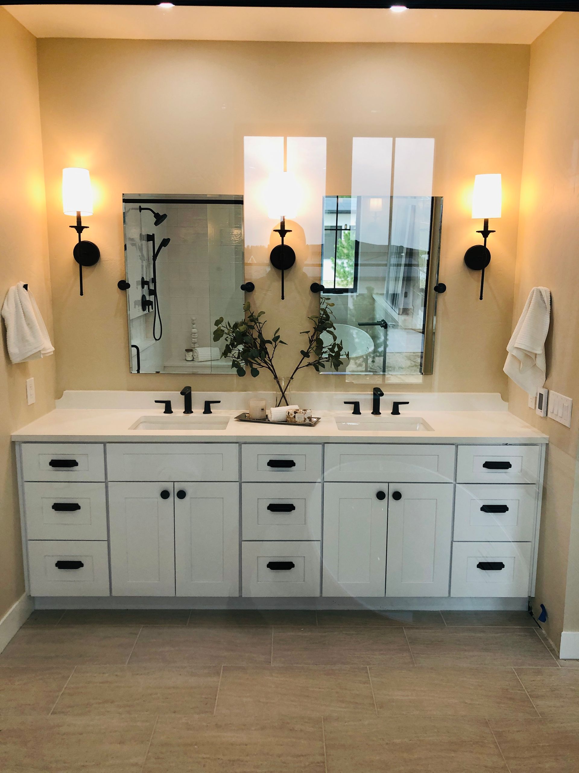 Our Shaker painted cabinets offer a clean, timeless look ideal for bathroom spaces.
